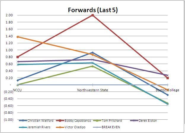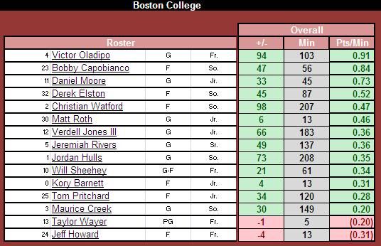 Even though Elston and Bobby were positive this game, it still lowered their Pts/Min for the year.