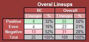 As you can see, I doubt we will win many games when the majority of CTC's lineups he puts out there are negative. Let me know in the comments if you like this part, and I'll keep doing it.