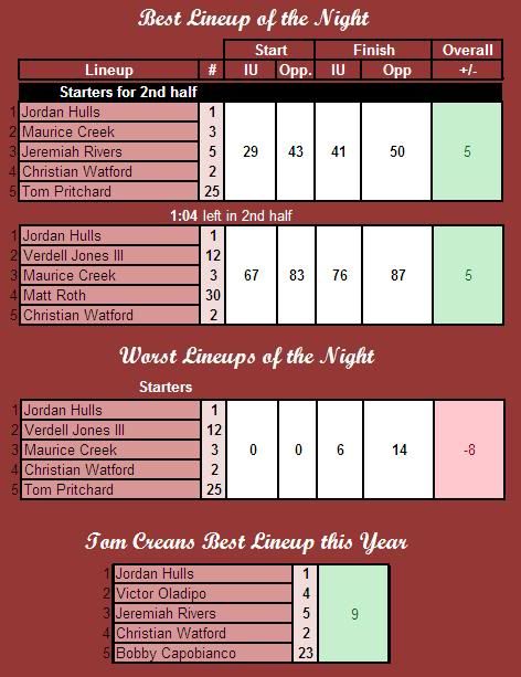 Tough loss for the Hoosiers. It was good seeing them come back in the second half, something this team wouldn't have done the last two years. Hopefully CTC can get the players together and get up for Saturday's game before they head to Kentucky.